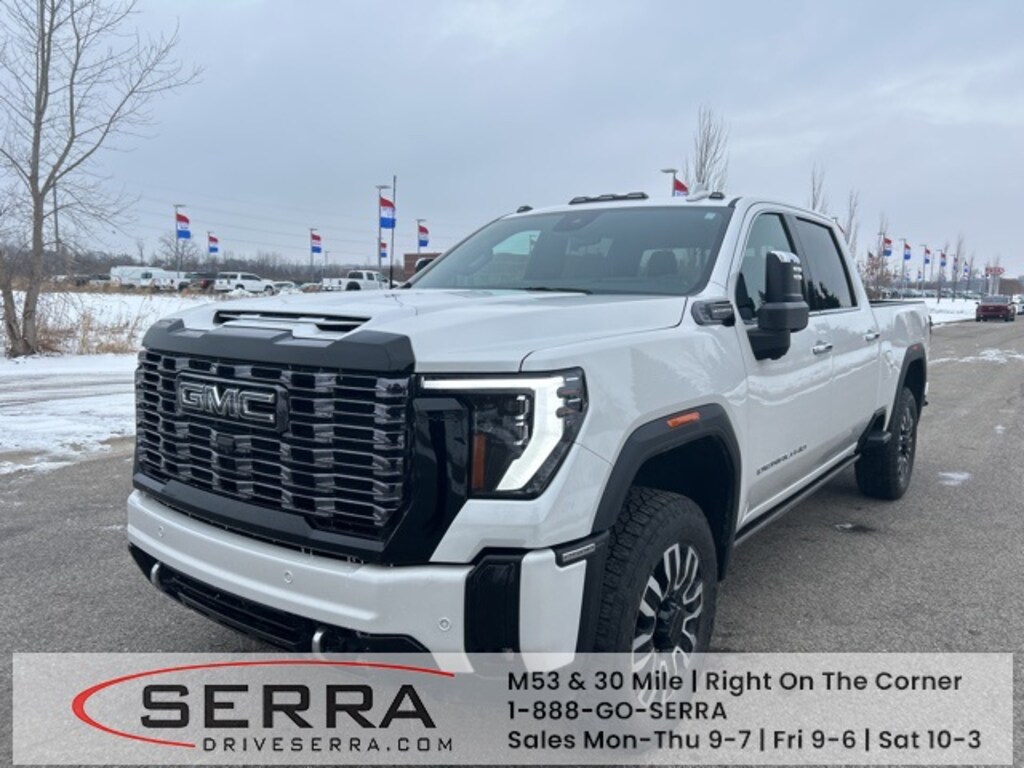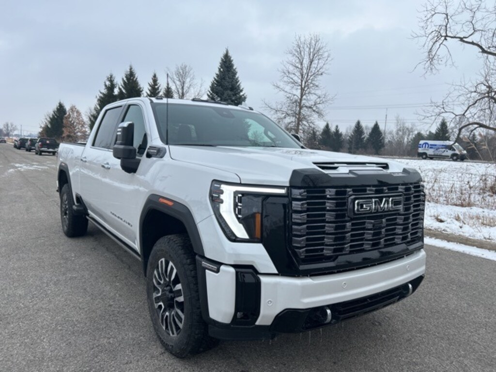 White Frost Tricoat 2025 GMC Sierra 2500HD Denali Ultimate 4D Crew Cab Duramax 6.6L V8 Turbodiesel 10-Speed Automatic 4WD